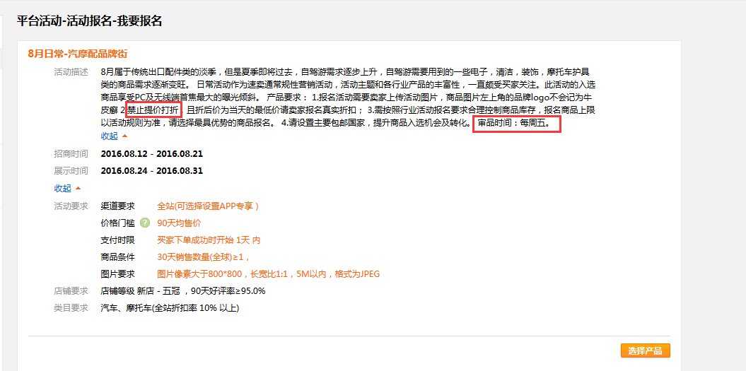 接着呢进去后可看到具体的速卖通平台活动要求: