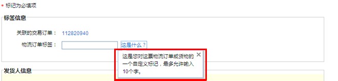 物流订单标签是您对这票物流订单或货物的一个自定义标记,最多允许输入10个字。