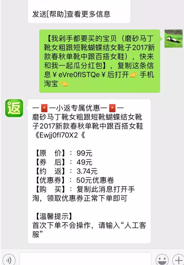 3.复制返利消息后,在淘宝一定会出现小返专属的淘口令,打开专用的淘口令后正常购买就可以了。
