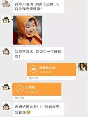 说实话,用这种方法引来的流量真是源源不断,群内自从小编进入时300多人,20分钟就接近2000人了。然后管理员又在群里不停晒这样的微信转账截图,看似给大家了一个圆满的交代,很明显微信转账截图是用软件做的。当然,肯定会有人质疑的,但是群内是个禁言群,有质疑也没法说。