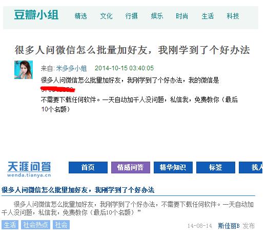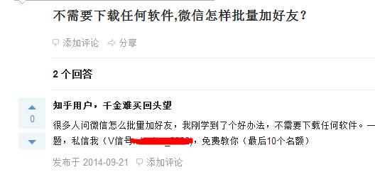 “很多人问微信怎么批量加好友,我刚学到了个好办法,不需要下载任何软件。一天自动加千人没问题,加微信呢XXXXX私信我,免费教你(最后10个名额)”