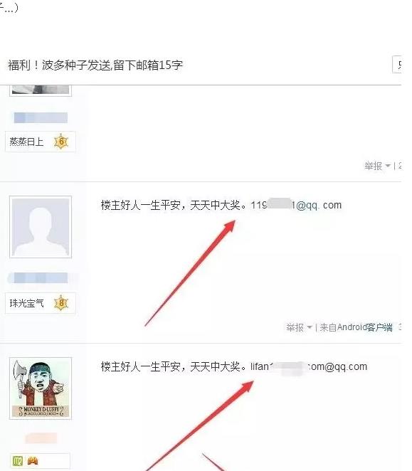 我们找到这样的一个帖子,然后我们会在下面看到很多留邮箱的人。(这女的是谁?怎么那么多人要他的种子…)