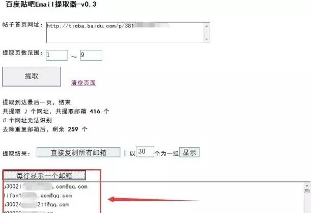 我们看到这个帖子有9页的评论,其中大部分都是留邮箱的。那么我们就需要把这些邮箱收集起来,这里我们可以用到一个邮箱收集软件来收集。(软件的话大家自己去找吧。)