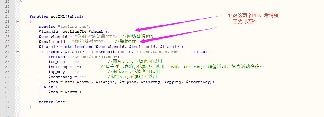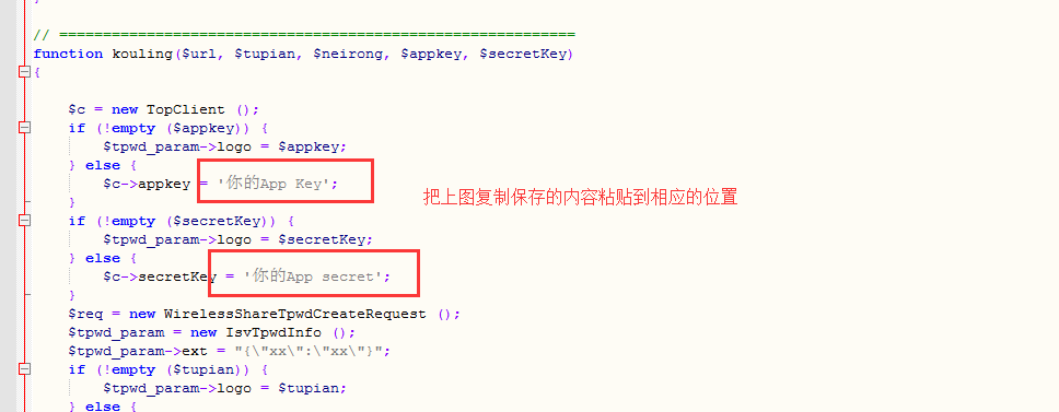 打开Kouling.Php,找到下面的代码,把上图复制保存的内容粘贴到对应的位置