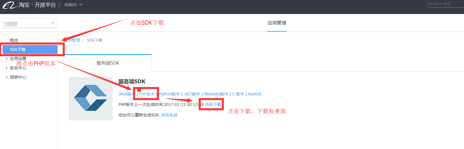 4、下载淘宝联盟的Sdk并解压: