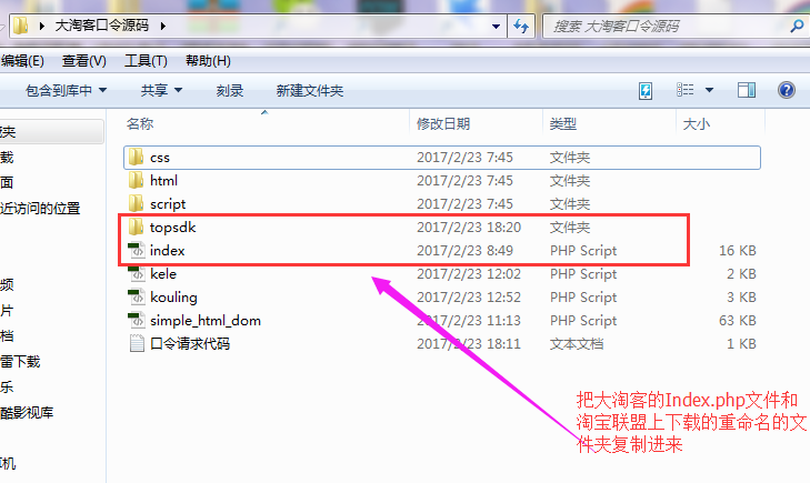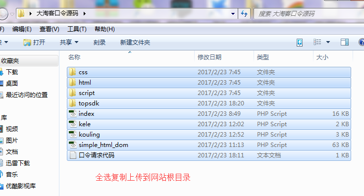 5、把全部修改好的内容复制到下载解压的大淘客口令文件夹里面,然后全部上传到网站跟目录: