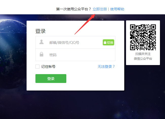 一、打开微信公众号平台:<https://mp.weixin.qq.com/>