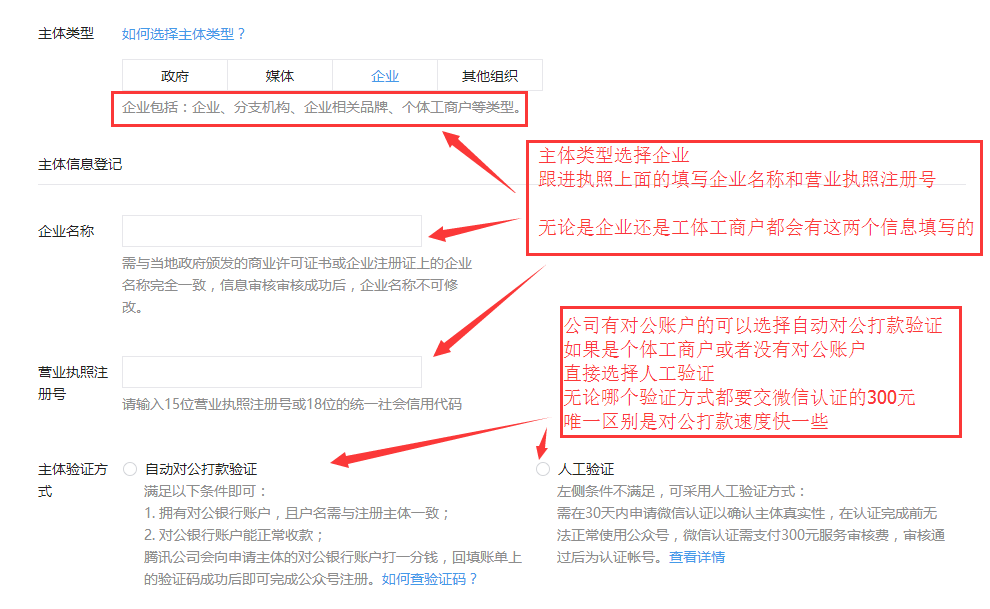 主体验证方式:有对公就选择自动对公打款验证(速度快),如果没有就选择人工验证(速度慢) 都是要交300元的服务审核费的。