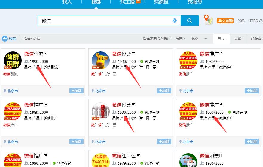 做引流:群排名靠前,会得到最高的曝光量,很多人搜索某一领域的群往往喜欢加最靠前的那几个,就是因为方便快捷,而且人数一般接近满人。