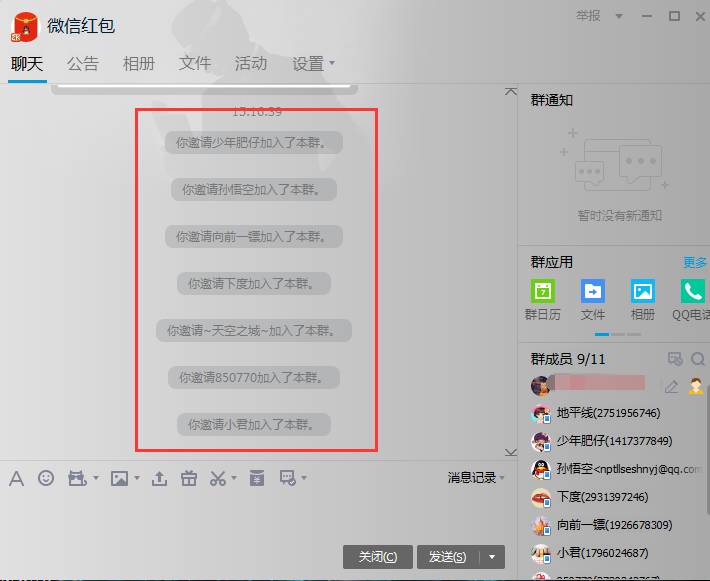 还有,凡事都要有一个量,假人也不能邀的太多太频繁,有一位朋友就来咨询我,说他在一段时间内大量的邀假人入群,结果群被系统检测到限制了。