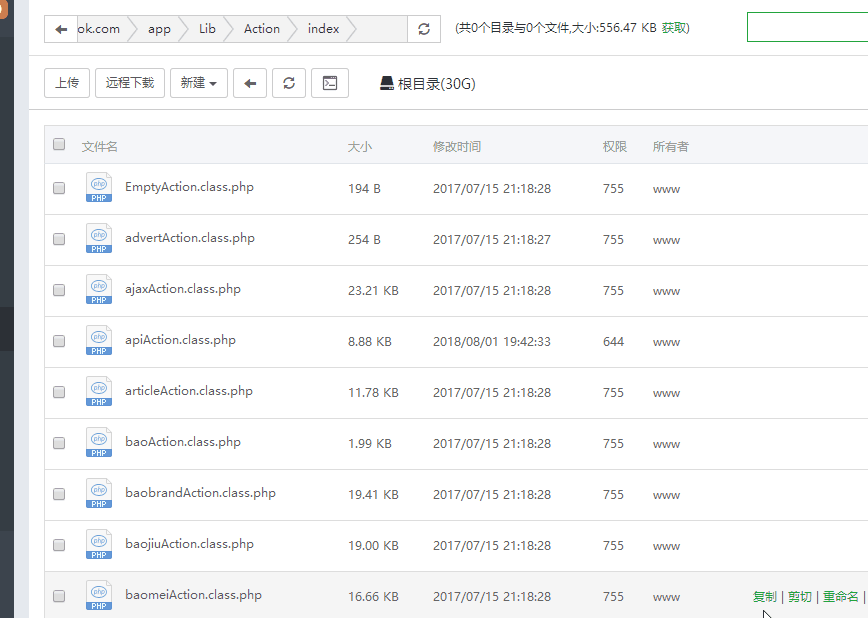 将apiAction.class.php文件上传到服务器杨他他系统 /app/Lib/Action/index/ 目录。