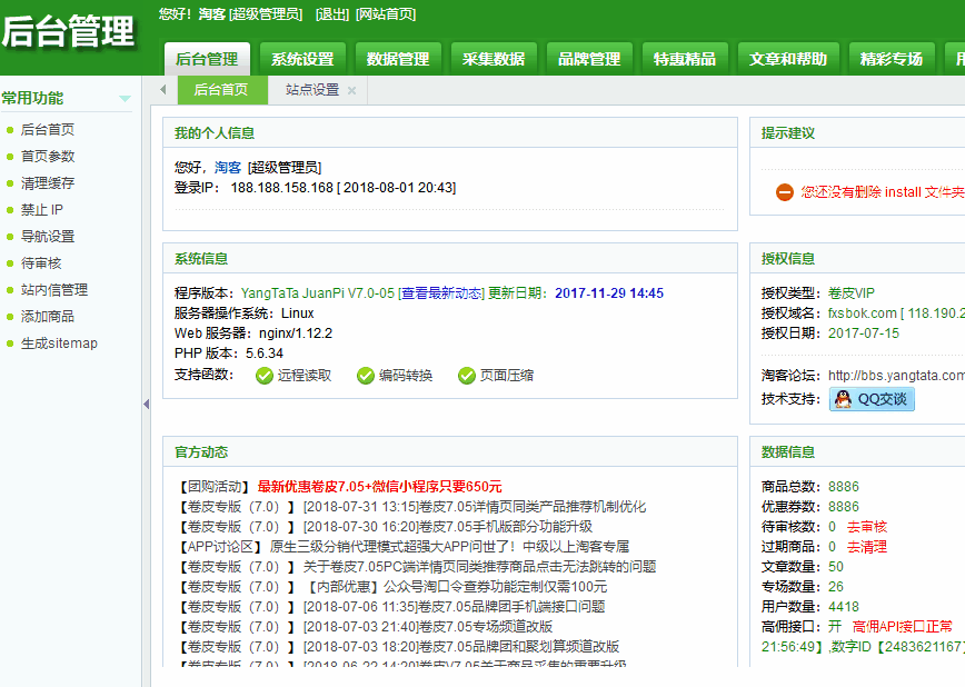 在杨他他系统后台的 系统设置>站点设置>数据推送token 处,查看这一行的值(如果值为空,请自己随便输入一些字母数字做为密钥,然后保存下)。