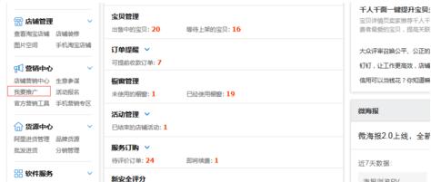 1、进入卖家中心,在左侧的导航栏中,找以营销中心--我要推广,并点击我要推广,进入推广界面!