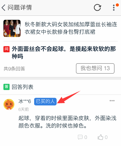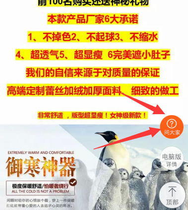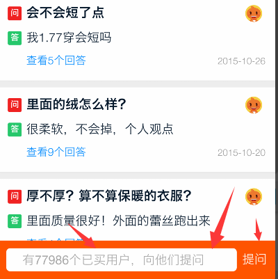 点开往下拖,看商品详情的时候,会看到一个“问大家”按钮。