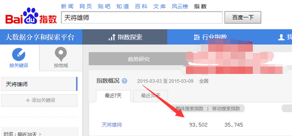 首先,我们看一下,最新电影《天将雄狮》,百度指数很高。