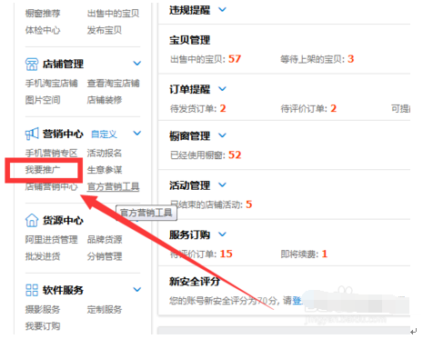 废话不多说,懂的看了就懂,首先进么到淘宝卖家中心,在左侧菜单栏找到“我要推广”选项,如图