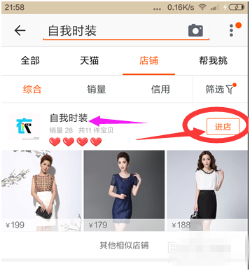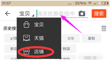 3. 或者在收索栏收索店铺名字,选择店铺然后搜索店铺名字
