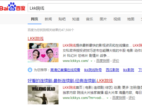 用户搜索“kkk院线”结果如下,排名第一位和第二位都是该网站,第三位是百度知道,百度知道自己做的,然后通过回答诱导用户注册游戏,可以很好的提高流量的转化率。