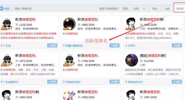 我们可以加QQ群互粉,我们在QQ上搜索互粉QQ群,然后看活跃度排名,一般靠前群都是很活跃的,几乎没有僵尸粉,我们也可以选择垂直领域的互粉QQ群,如美容、美食、科技等。这种粉质量会很高,以后在微博做产品推广,比如化妆品、零食、电子产品等,他们会很容易接受。