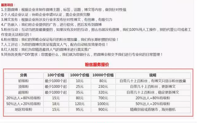这是五个诀窍中最具有效率而且最快速的,花费一定的金额可以得到对应的粉丝数,因为他们做的是加粉的业务,有专业团队和软件,目前网上的加粉网站很多,大家要注意,加粉是具有风险的。