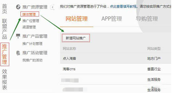3、【推广管理】---【媒体管理】---【新增网站推广】