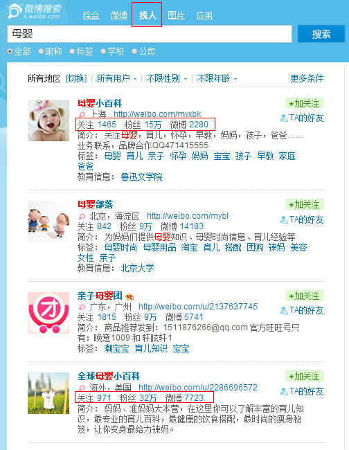 上图中,我用红线圈了两个账号,为啥一个32万粉丝的比9万、15万粉丝的,排名都低。其实你点击进去看,“全球母婴小百科”、“母婴小百科”这两个账户,一看就清楚了。