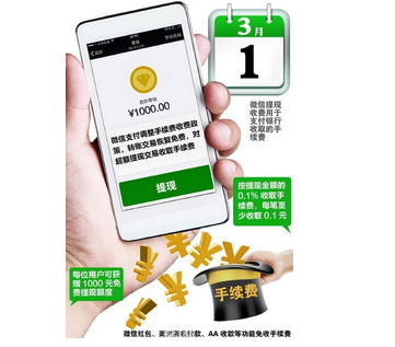 微信平台表示给每个使用用户提供1000元的免费提现额度,而超过的额度就会按照用户的提现金额的0.1%收取手续费,没笔的提现至少要收取0.1元手续费。