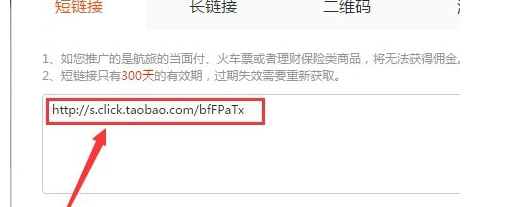页面即弹出该商品的淘宝客链接,这是短链接,有效期为300天,超过300天此短链接就失效。