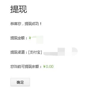 7、网站显示提现成功信息指示,可进入支付宝查看余额。如图所示: