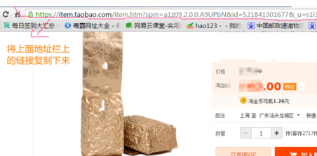 先在淘宝或者天猫上按照你的需求选择你需要的商品,比如你需要购买茶叶,那么搜索并找到要购买的茶叶链接后,将链接复制下来。