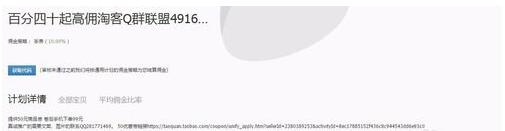 第三步:点击任意一个高佣金推广计划,进入如下图一样的页面。我们可以申请加入淘宝客高佣金推广计划,因为这个计划我已经加入了所以就没有显示,大家第一次操作会有提示的。