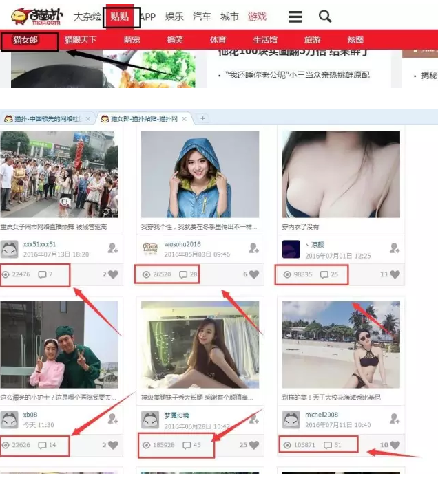 从上图我们可以看到在这个“猫扑贴贴”里发美女图片的帖子浏览量是有多大的,那么这个猫扑贴贴怎么引流呢?直接在文章里面留联系方式吗?