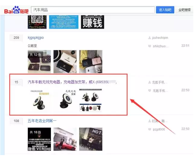 再比如你是做汽车用品的。你能想到的推广渠道还是贴吧。那么我们还是去找一下我们的“同行”是怎么推广的。