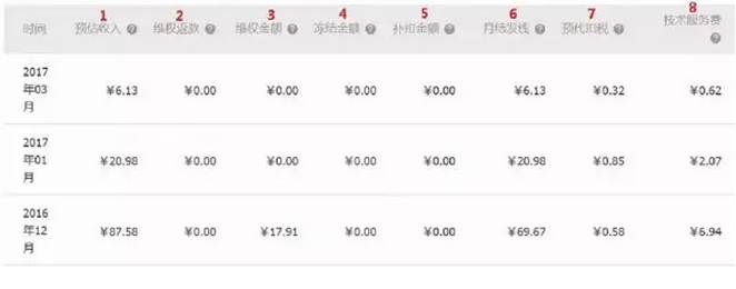 6、月结发钱:可结算的佣金收入,包含技术服务费和预代扣税金。