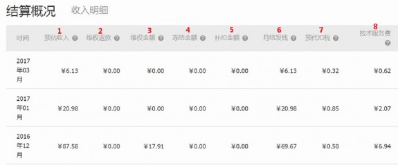 6、月结发钱:可结算的佣金收入,包含技术服务费和预代扣税金。