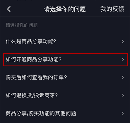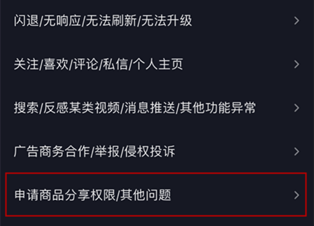 第三步:往下拉,可以看到【申请商品分享权限/其他问题】,点击进入