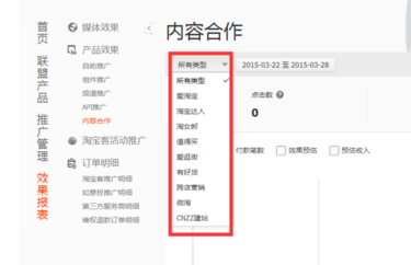 之后在点击上面的的“媒体类型”就可以看到可以在站内做淘宝客推广的地方了。