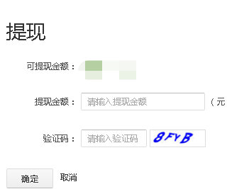 点击提现按钮,输入当前余额或者当前余额内的金额。如图所示: