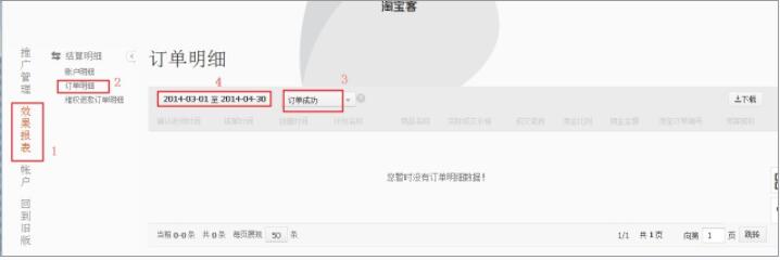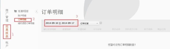 2、点击【效果报表】--【订单明细】,这里可以筛选时间查看到具体的交易订单情况等。