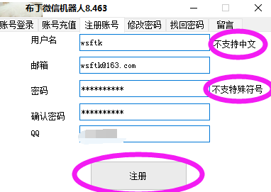 1、打开布丁机器人主程序-进入账号注册页面(账号不支持中文、邮箱;密码不支持特殊符号)