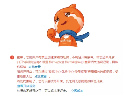 关于开店跳红字的解决方法,很多朋友都是同一个法人开到第三家、第四家就出现图片上的违规提示,哪怕是在网吧或者服务器开店,都不能避免。情况如下图所示: 之所以出现这样的违规提示是淘宝账户的风险问题,并不是支付宝的问题,大多数出自于淘宝号所导致的账户风险问题,说完违规原理,再说解决办法。 1. 出现这种情况,不要忙于操作,退出电脑端。 2. 准备一张手机卡(可以是电话卡可以是注册卡)