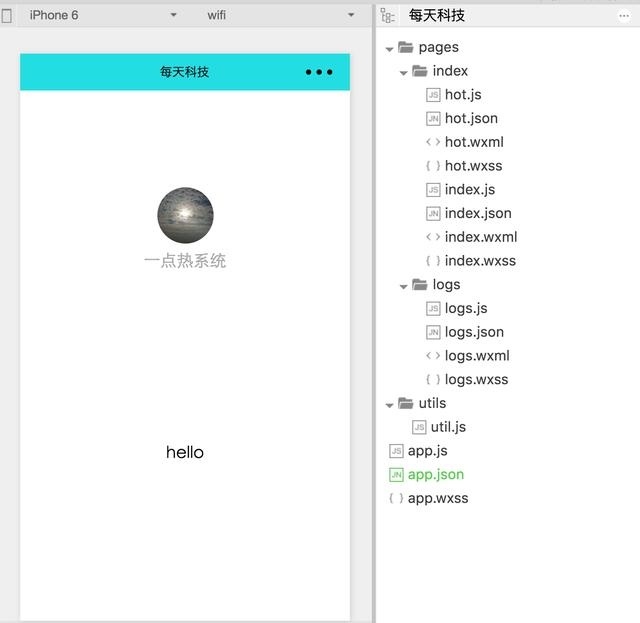 app.wxss,这个是全局的样式页面,大家可以在这里放自己的布局元素此外。里面有一个logs文件夹,这个就是我们的日志记录文件。可以用于调试用途。