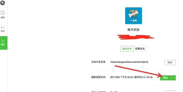 我们只需要点击开发软件的项目,点击预览这个按钮,点击预览就会弹出体验信息,扫描就可以预览了。当然需要有开发者权限,如下图