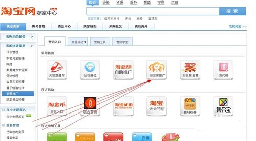 1、先登陆自己的淘宝账号,进入"卖家中心"然后在页面的左侧栏里找到"营销中心",选择"我要推广"