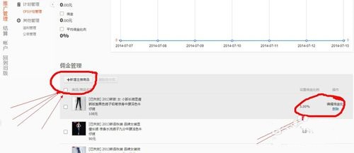 5、创建计划成功后,就可以增加主推产品和设置相应的佣金.