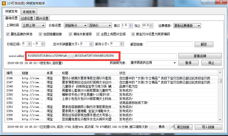 然后打开小叮当突破软件,登录帐号,然后将session输入到sessionKey的方框