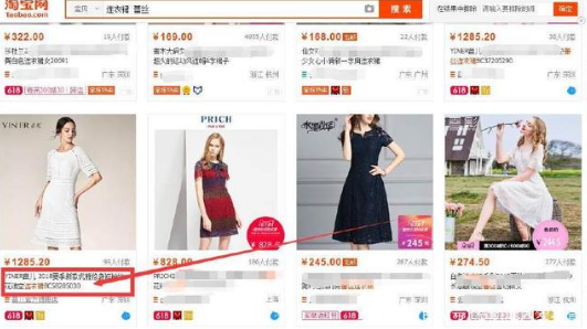 我们在淘宝的搜索框里面输入“连衣裙 蕾丝”你会发现,红色框的产品标题中并没有包含“蕾丝”这个关键词,却依然拿到了展现,原因就在该产品的属性当中有标明“蕾丝”面料,不信的可以去搜索看看。