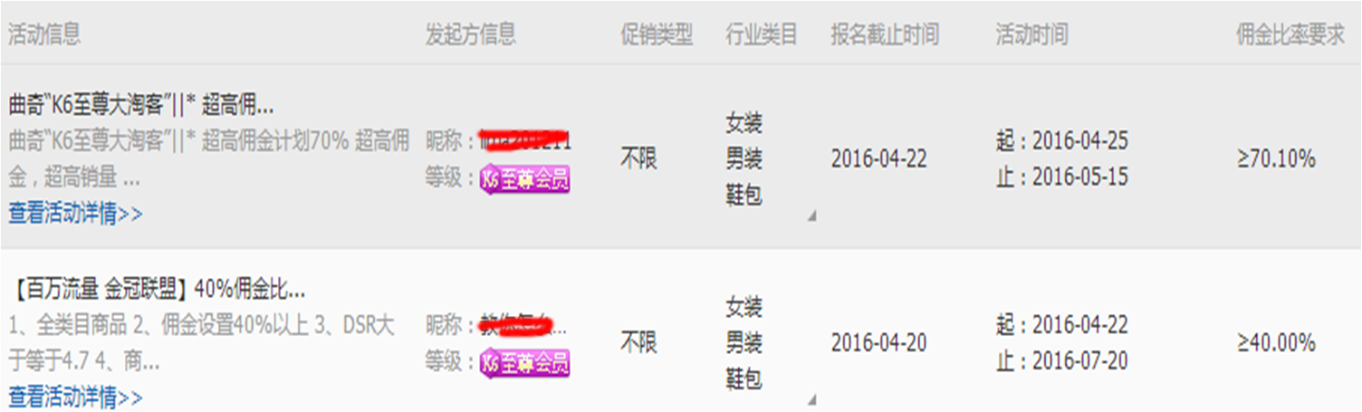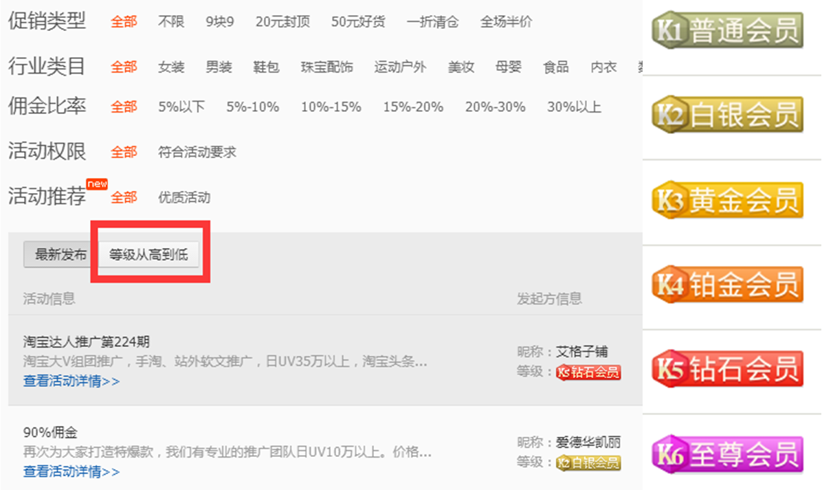 淘客也有等级,分为:普通会员 白银会员 黄金会员 铂金会员 钻石会员 至尊会员。等级越高 相对月淘客推广销量越高!我们报名可以优先选择信用度较高的活动,类似于买东西优先选择皇冠卖家一样!但同时注意 淘客等级较高的活动 相对可能活动要求也高 ,具体活动效果还是因人而异!