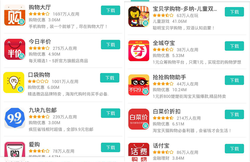 在各大手机APP应用市场 选择购物分类或者搜索购物关键词