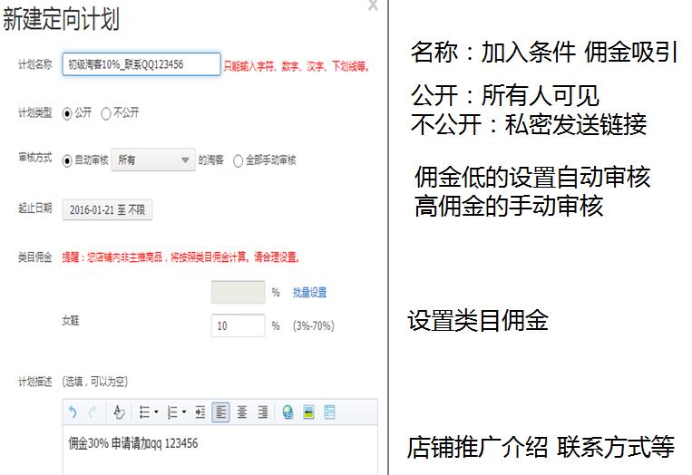 1.计划名称一定写好佣金优势 及引导留联系方式。如:达人专属30佣金申请请留联系方式